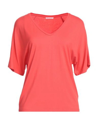 Woman T-shirt Coral Size 4 Viscose, Elastane In Red