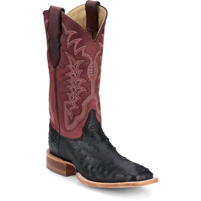 Men's Chisholm 13" Full Quill Ostrich Boots In Black/red In Multi