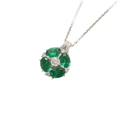 Women's Green / White Pristi White Gold Pendant Necklace With Emeralds & Diamonds In Multi