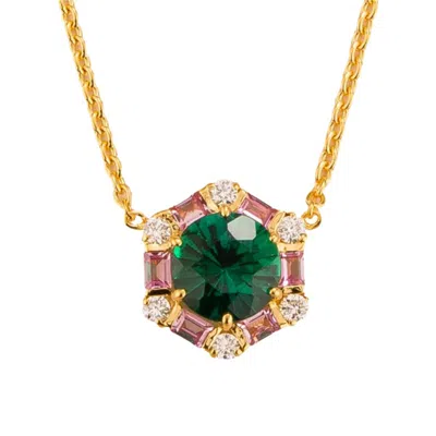 Women's Pink / Gold / Green Emerald, Pink Sapphires & Diamonds Melba Gold Necklace In Multi