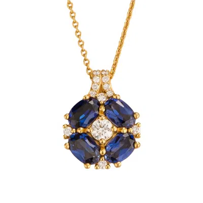 Women's White / Blue Pristi Gold Necklace Blue Sapphires & Diamonds In Multi