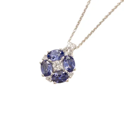 Women's White / Silver / Blue Pristi White Gold Necklace With Diamonds & Ceylon Blue Sapphire In Multi