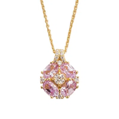 Women's White / Pink / Gold Pristi Gold Necklace Pink Sapphires & Diamonds In Multi