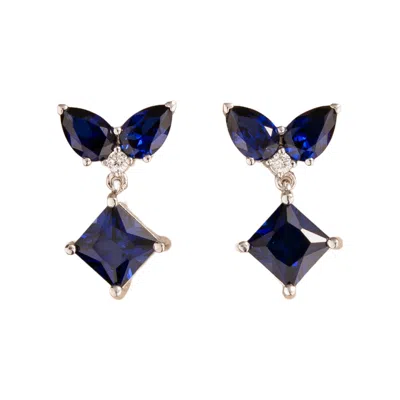 Women's White / Silver / Blue Verda White Gold Earrings In Blue Sapphire & Diamond