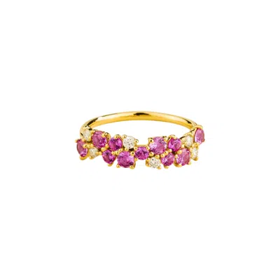 Women's Pink / Purple / White Starry Gold Ring Pink Sapphire & Diamond In Multi