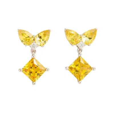 Women's Silver / White / Yellow Amore White Gold Earrings Yellow Sapphire & Diamond In Multi