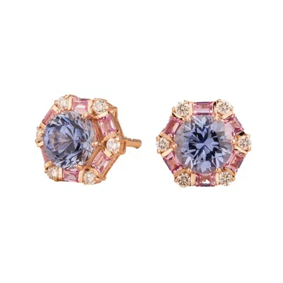 Women's Blue / Pink / Rose Gold Melba Rose Gold Earrings Ceylon Blue Sapphire, Pink Sapphire & Diamo