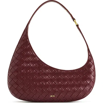 Harlee Woven Faux Leather Shoulder Bag In Burgundy