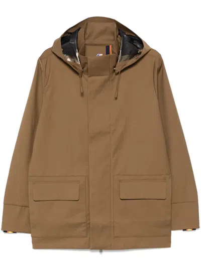 Logo-patch Hooded Single-breasted Coat In Neutrals