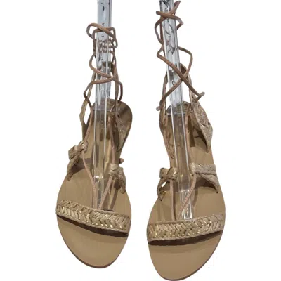 Women's Raffia Ankle Wrap Sandals In Nude In Brown