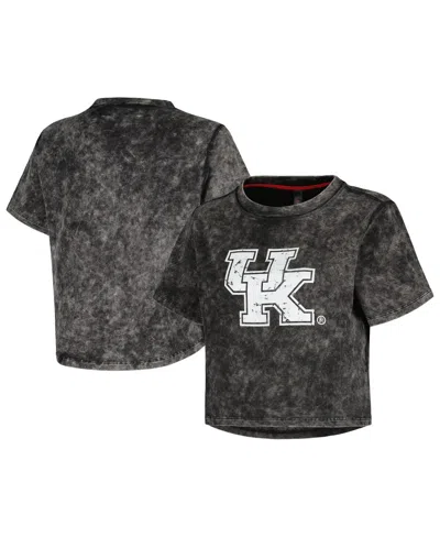Women's Black Distressed Kentucky Wildcats Vintage-like Wash Milky Silk Cropped T-shirt