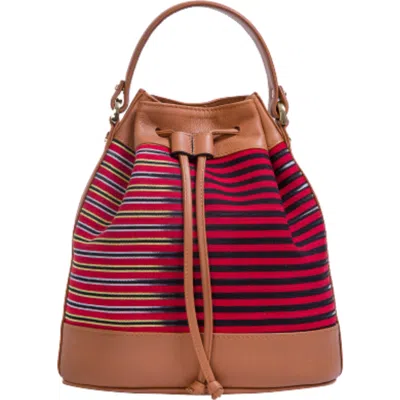 K'ai & Vrosi Leather & Striped Fabric Pattern Convertible Bag In Brown