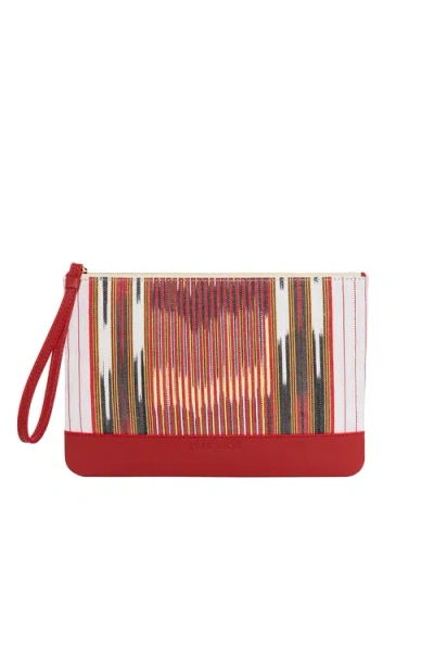 K'ai & Vrosi Puli Calfskin & Handloomed Fabric Clutch In Red