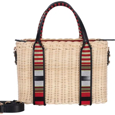 K'ai & Vrosi Woven Straw Handbag With Leather Trimmed Handles In Black