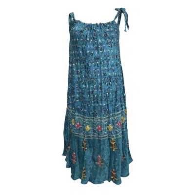 Women's Blue Silk Beaded Turquoise Tie Shoulder Dress