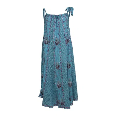 Women's Blue Silk Beaded Denim Tie Shoulder Dress