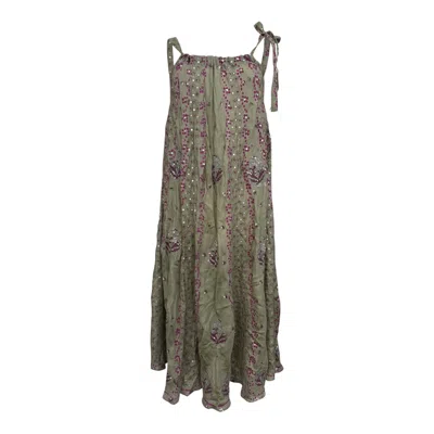 Women's Green Silk Beaded Olive Tie Shoulder Dress