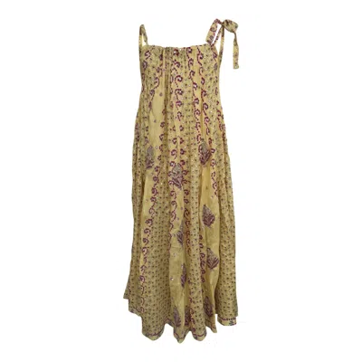 Women's Yellow Silk Beaded Tie Shoulder Dress