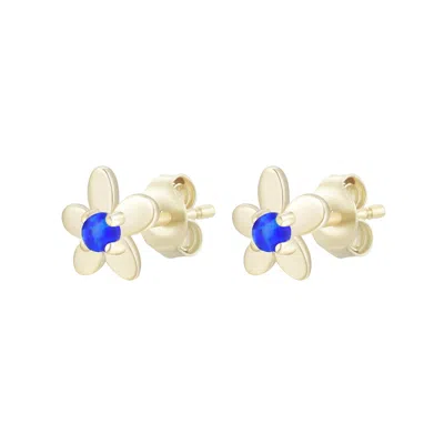 Women's Blue Mini Flower Opal Stud Earrings - Indigo In Gold