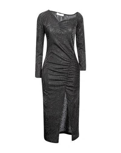 Woman Midi Dress Black Size 6 Polyester, Polyamide, Metallic Fiber, Elastane