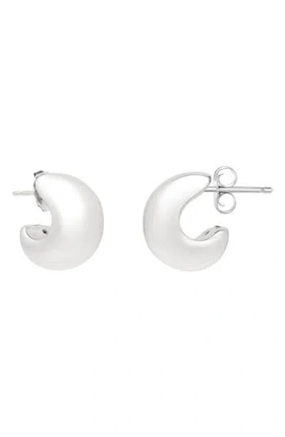Puffed Three-quarter Hoop Earrings In Rhodium White