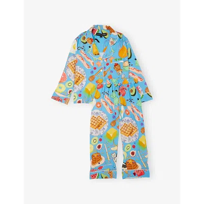 Kids' Blue Breakfast Printed Satin Pyjamas 2-12