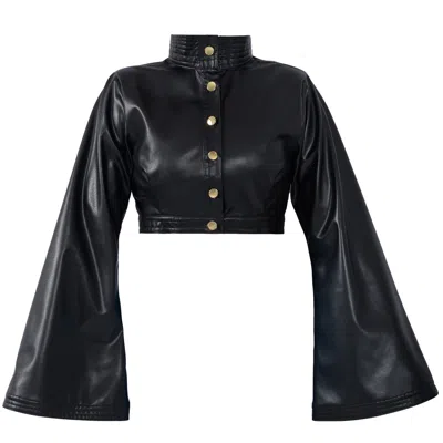 Women's Black Leather Cropped Jacket – High Neck, Vegan Faux