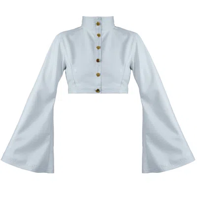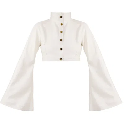Women's White Leather Cropped Jacket – High Neck, Vegan Faux