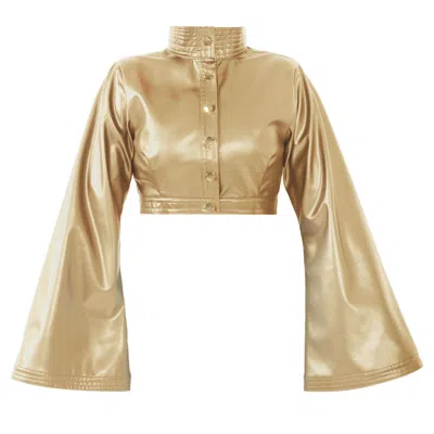 Women's Gold Leather Cropped Jacket – High Neck, Vegan Faux