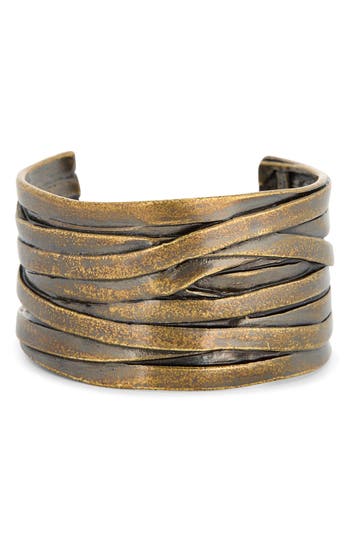 Crystal Hammered Open Cuff Bracelet In Metallic