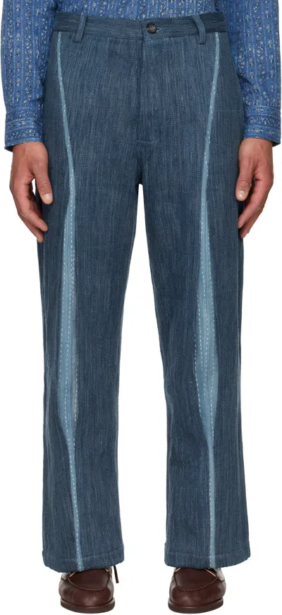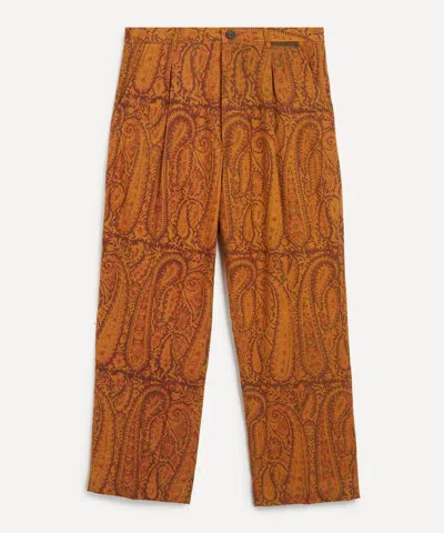 Mens Khaki Double Pleat Hand-embroidered Trousers In Green