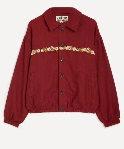 Mens Rishikesh Embroidered Herringbone Jacket In Red