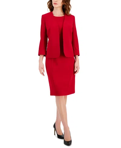 Women's Stretch Crepe Open-front Roll-sleeve Jacket, Regular & Petite In Red