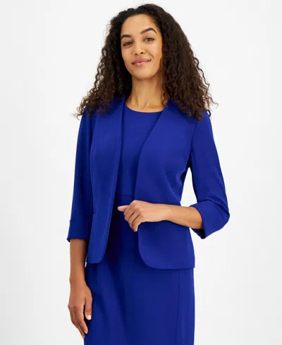 Women's Stretch Crepe Open-front Roll-sleeve Jacket, Regular & Petite In Blue