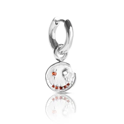 Women's Smile Hoop Earrings – July – Ruby – Silver