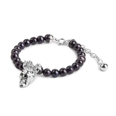 Women's Skull Pearl Bracelet - Silver & Ivory