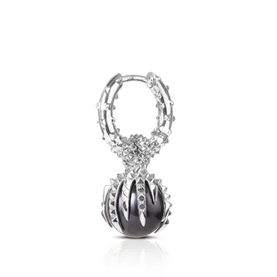 Women's Silver / Black Angel Kiss Earring - April - White Topaz - Silver In Multi