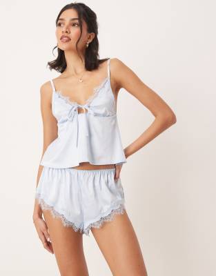 Lucille Lace Inset Tie Front Camisole In Ivory