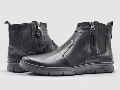 Men's Everyday Thin Wool-lined Zip-up Leather Boots In Black