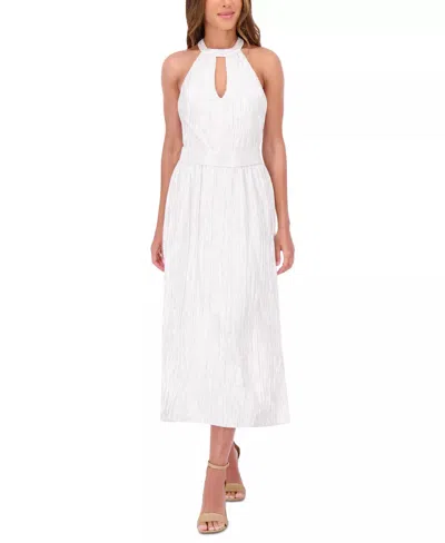 Metallic Pleated Keyhole-cutout Maxi Dress In Silver In White