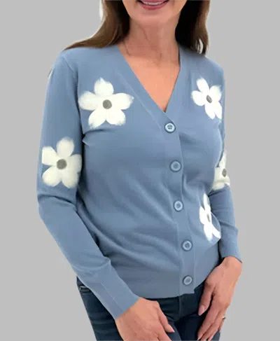 Soft Brushed Floral Cardigan Sweater In Blue In Black