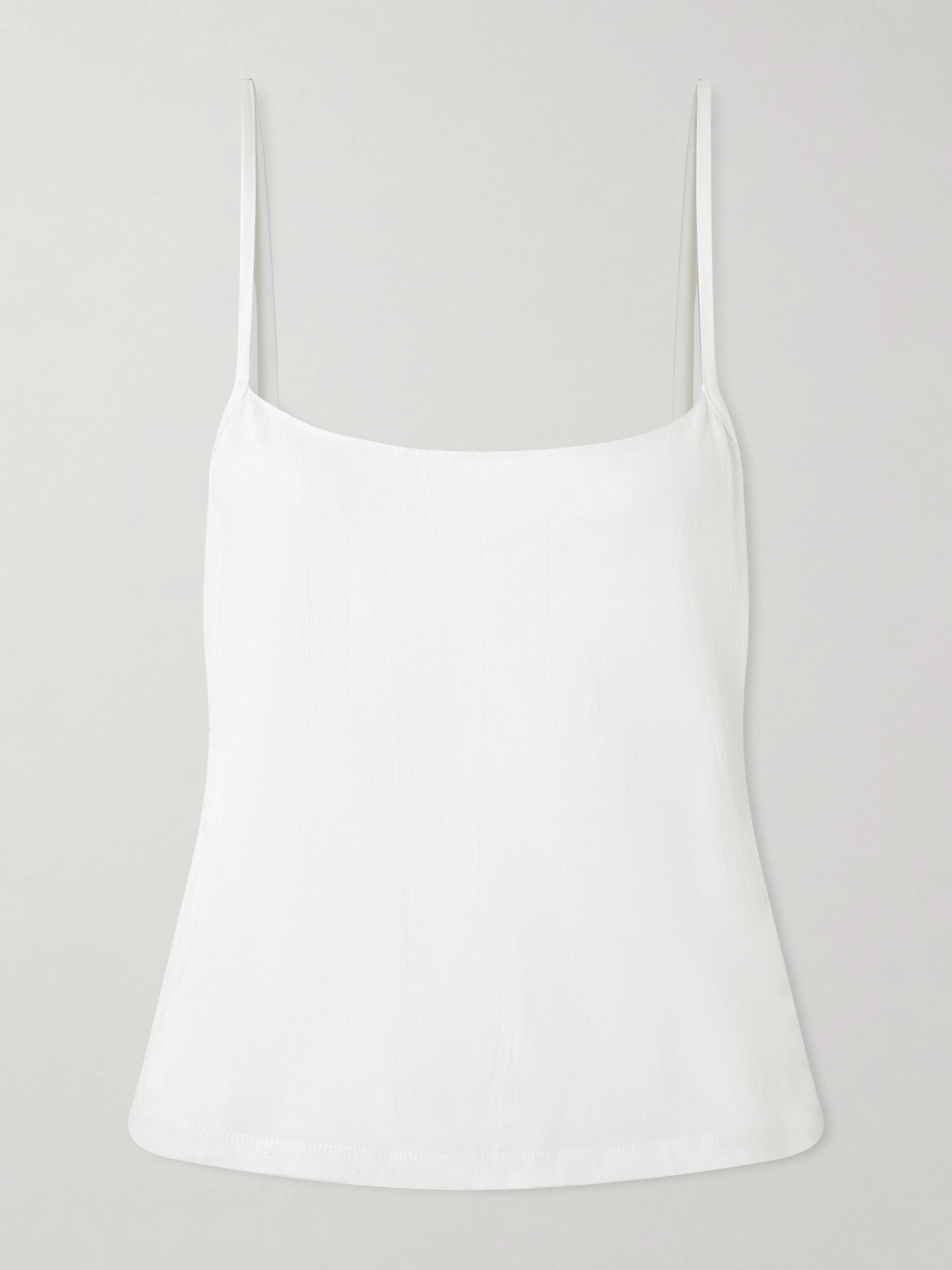 With industry experience as a design director at Vera Wang and Maiyet, Parsons graduate Catherine Holstein debuted her womenswear line Khaite for Fall/Winter 2015. A study in contrasts-- between masculine and feminine, severity and softness, fluidity and structure-- the label advances a refreshingly polished take on American sportswear staples. Elegantly pared-down shapes and a muted color palette highlight Holstein’s expertise in luxuriously textural fabrics. Inspired by tried-and-true vintage styles, the label’s stand-out Vanessa jean pairs a feminine high-rise with a modern straight-leg fit. Mid-length skirts and flared trousers are crafted in structural cotton twill, while long satin dresses, cotton poplin shirts, and crepe blouses are elevated by unexpected details. Mainstays such as soft cashmere knits, and sensuous jersey bodysuits round out Khaite’s collection of easy-to-wear basics.
