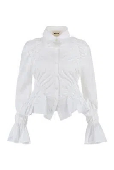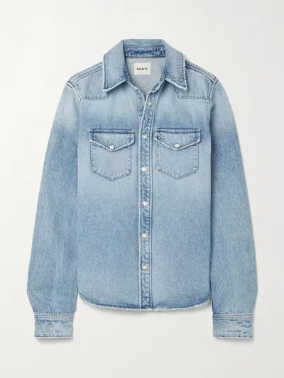 With industry experience as a design director at Vera Wang and Maiyet, Parsons graduate Catherine Holstein debuted her womenswear line Khaite for Fall/Winter 2015. A study in contrasts-- between masculine and feminine, severity and softness, fluidity and structure-- the label advances a refreshingly polished take on American sportswear staples. Elegantly pared-down shapes and a muted color palette highlight Holstein’s expertise in luxuriously textural fabrics. Inspired by tried-and-true vintage styles, the label’s stand-out Vanessa jean pairs a feminine high-rise with a modern straight-leg fit. Mid-length skirts and flared trousers are crafted in structural cotton twill, while long satin dresses, cotton poplin shirts, and crepe blouses are elevated by unexpected details. Mainstays such as soft cashmere knits, and sensuous jersey bodysuits round out Khaite’s collection of easy-to-wear basics.