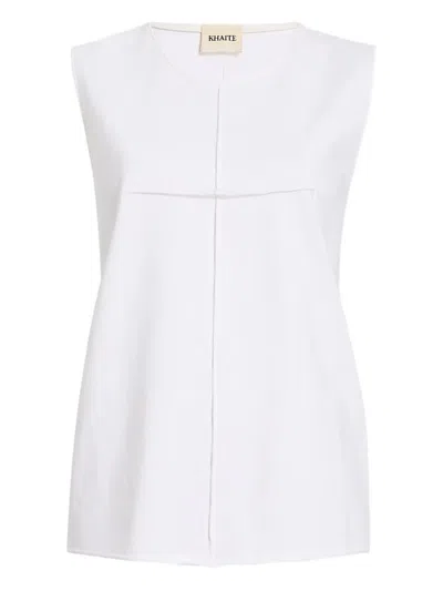 With industry experience as a design director at Vera Wang and Maiyet, Parsons graduate Catherine Holstein debuted her womenswear line Khaite for Fall/Winter 2015. A study in contrasts-- between masculine and feminine, severity and softness, fluidity and structure-- the label advances a refreshingly polished take on American sportswear staples. Elegantly pared-down shapes and a muted color palette highlight Holstein’s expertise in luxuriously textural fabrics. Inspired by tried-and-true vintage styles, the label’s stand-out Vanessa jean pairs a feminine high-rise with a modern straight-leg fit. Mid-length skirts and flared trousers are crafted in structural cotton twill, while long satin dresses, cotton poplin shirts, and crepe blouses are elevated by unexpected details. Mainstays such as soft cashmere knits, and sensuous jersey bodysuits round out Khaite’s collection of easy-to-wear basics.
