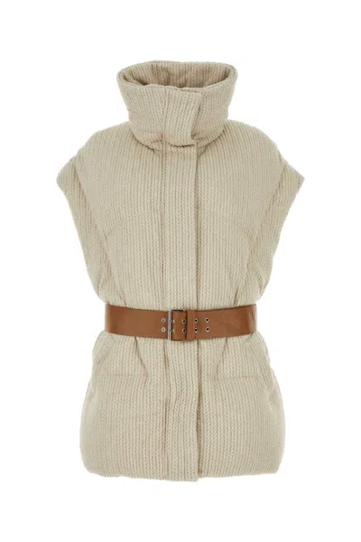 Piumino New Iconic Smanicato In Maglia Sabbia Donna In Brown