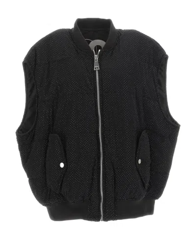 Embellished Zip-up Vest In Black