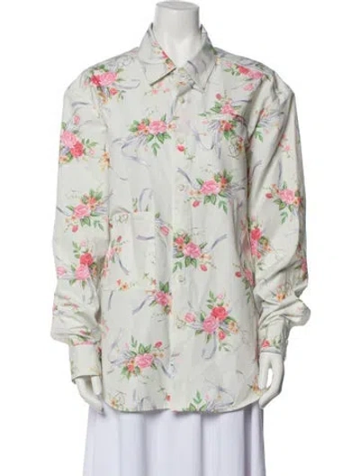 Pre-owned Floral Print Long Sleeve Button-up Top In White