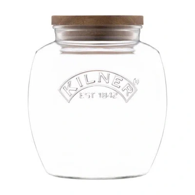 Universal Glass Storage Jar With Wooden Lid And Silicone Seal In Brown