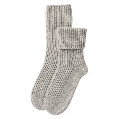 Ladies Light Grey Ribbed Cashmere Bed Socks In Neutral