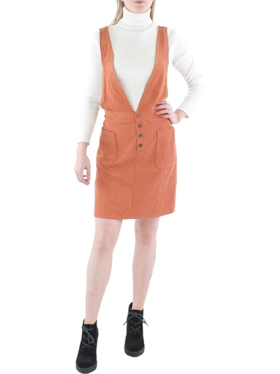 Juniors Womens Corduroy Jumper Mini Dress In Multi